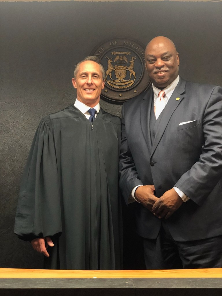 Attorney G. Whitney McRipley greets former U of M basketball great, Tom Staton, Life Coach and Minister at Empowerment Church of Southfield and lifelong friend and supporter. “G. Whitney and I have shared successful life experiences from elementary school to college to fellow elected officers of the Township of Royal Oak. He has always demonstrated a passionate commitment to service and justice for this community. I wholeheartedly endorse him for the position of 45th District Judge.”